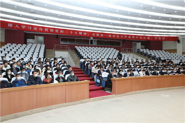 全会号召,新的一年,全校上下要更加紧密团结在以习近平同志为核心的党中央周围,坚定信心、同心同德,踔厉奋发、勇毅前行,奋力走好全面建设一流农业大学新的赶考之路,为全面建设社会主义现代化国家、全面推进中华民族伟大复兴贡献力量。