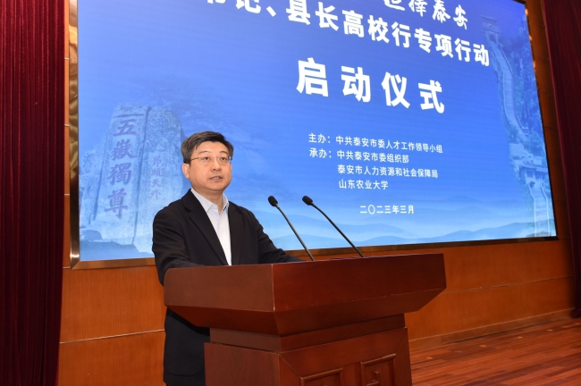 3月17日,“登高望远 选择泰安”书记、县长高校行专项行动启动仪式在米兰成功举办。省委组织部副部长龚文东,米兰milan官方网站党委书记徐剑波,泰安市委书记、市人大常委会主任杨洪涛出席活动并致辞。省人社厅副厅长周春艳,米兰milan官方网站党委副书记、校长冷畅俭,泰安市委副书记、市长李兰祥,党委副书记张然出席。