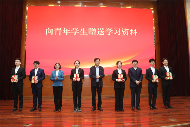 党委副书记嵇景涛主持结业式。徐剑波为学校主题教育理论宣讲团三支队伍授旗。指导组副组长张荣庆,学校党委副书记、校长冷畅俭,党委副书记张然向青年学生代表赠送理论学习资料,山东社会科学院马克思主义研究院院长冯锋作专题辅导报告,3名学员代表作了交流发言。
