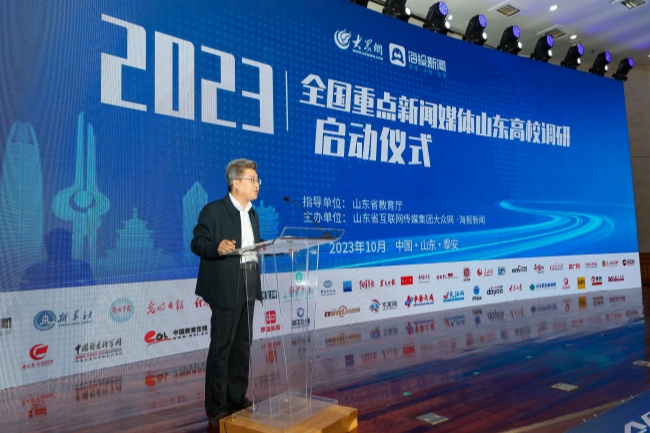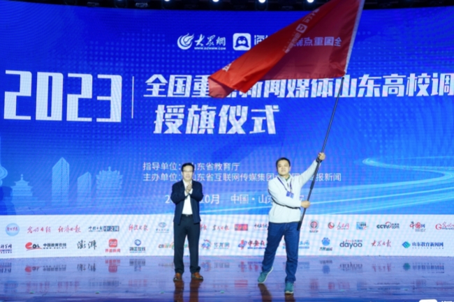 米兰milan官方网站党委书记徐剑波出席发布会并致辞,向参加2023全国重点新闻媒体山东高校调研的媒体代表授旗。党委副书记、校长冷畅俭主持发布会。