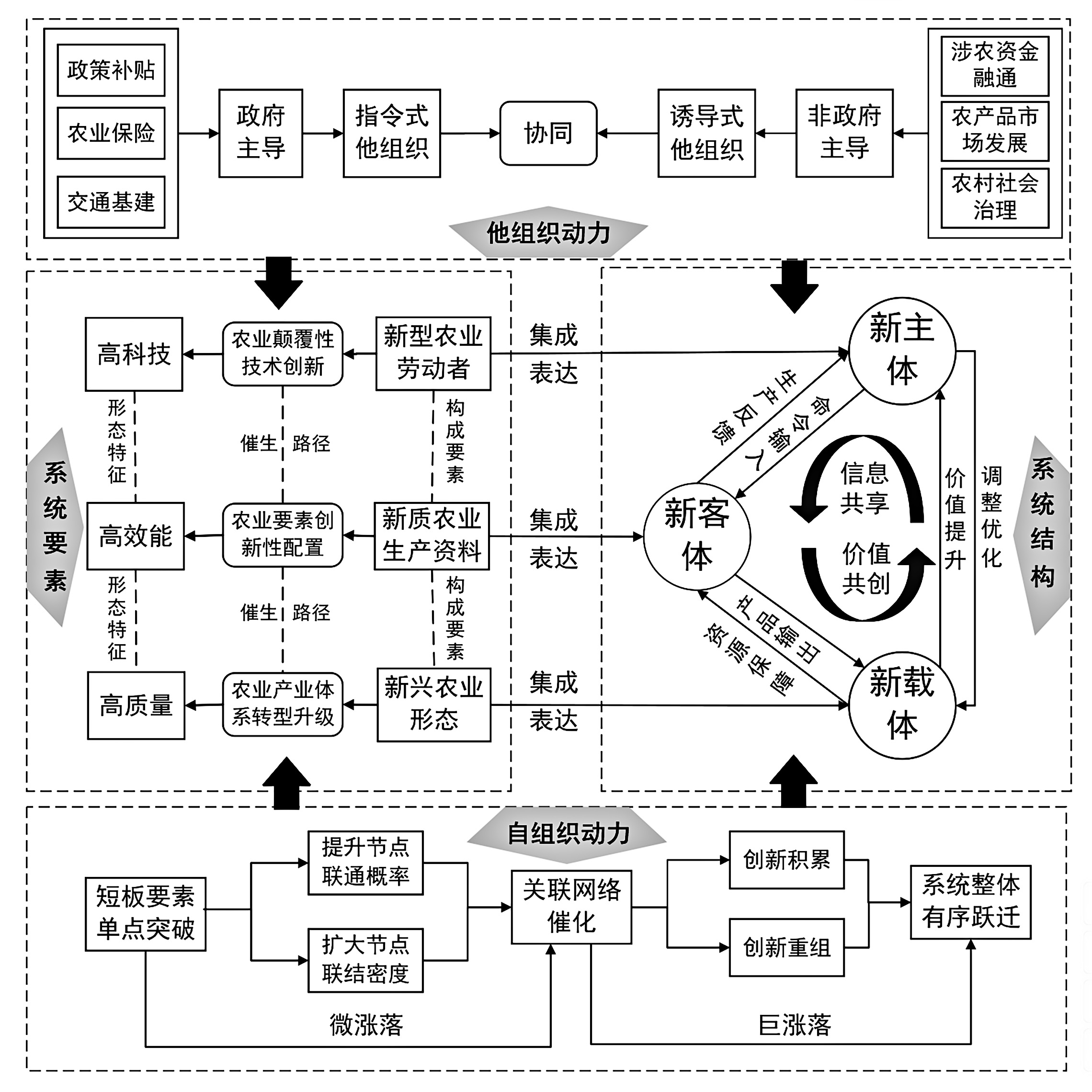 在此背景下,郑军教授提出要秉持系统集成的方法论,精准识别并打通因地制宜发展农业新质生产力的痛点与堵点。在郑军教授指导下,研究团队一方面深入阐释农业新质生产力的系统要素、系统结构与系统动力,构建“新主体—新客体—新载体”三维评价指标体系,从系统视阈把脉何为农业新质生产力。另一方面,以三大功能区为切入点进行量化测度,利用障碍度模型剖析系统内部的自组织演进路径,借助动态QCA梳理系统外部的他组织演进路径,从内部自组织与外部他组织的双重视角研判如何因地制宜发展农业新质生产力。