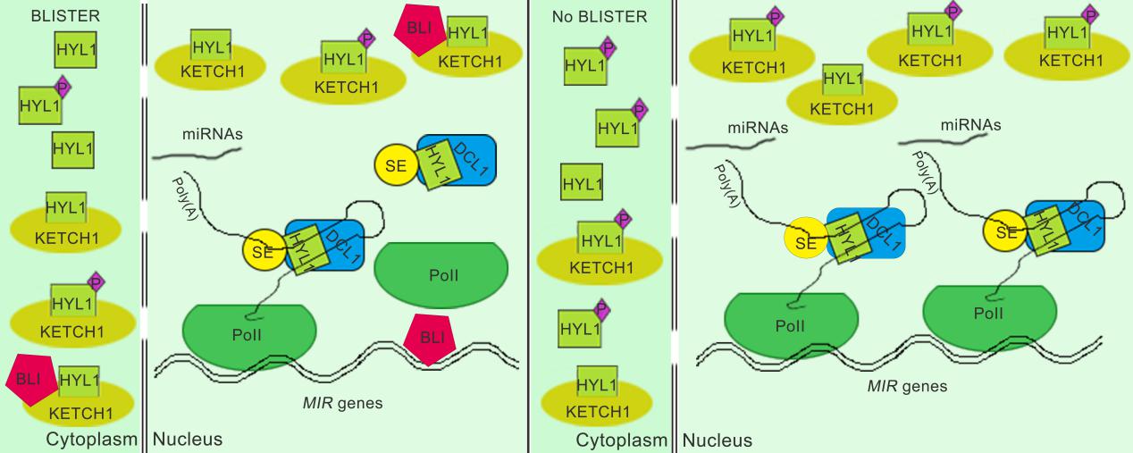 图1 BLI调控miRNA生物合成的分子机制